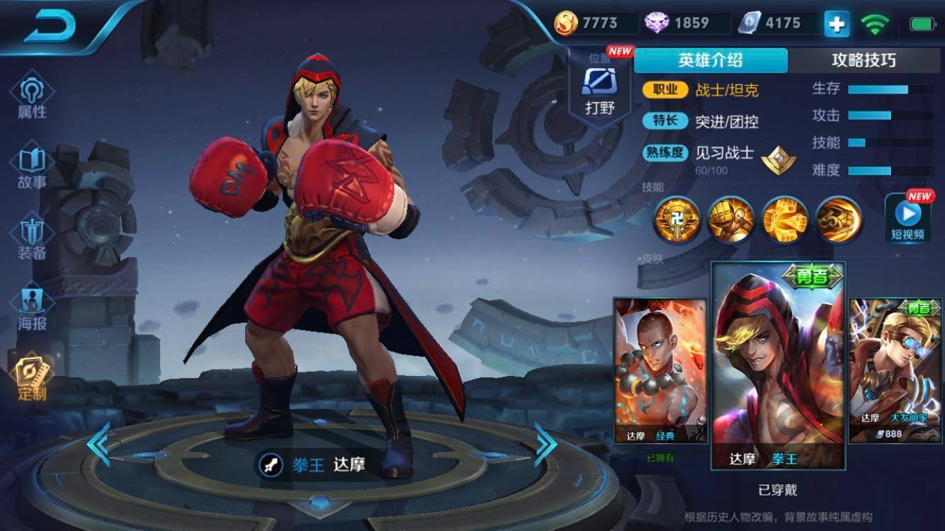 达摩的英雄定位比较多样,可用来走边路也可用来打野。由被动所带来的回血效果4能够保证线上的安全血量和打野不掉血,每释放一次技能后满攻速双拳出击两下,更是把吸血的效率做到了极致。1技能能够穿墙大大提升了达摩的机动性,在打野位置上也能够更好的掌握野区。2技能能够减少敌方英雄的护甲。能够最大化对敌方的伤害。四级后的大招更是集爆发和控制为一体,还附带斩杀效果。一套技4能的伤害足以秒杀脆皮英雄。达摩的输出伤害非常足,出半肉半输出也能快速秒掉后排c位并且保证自己的存活也是没有任何问题。