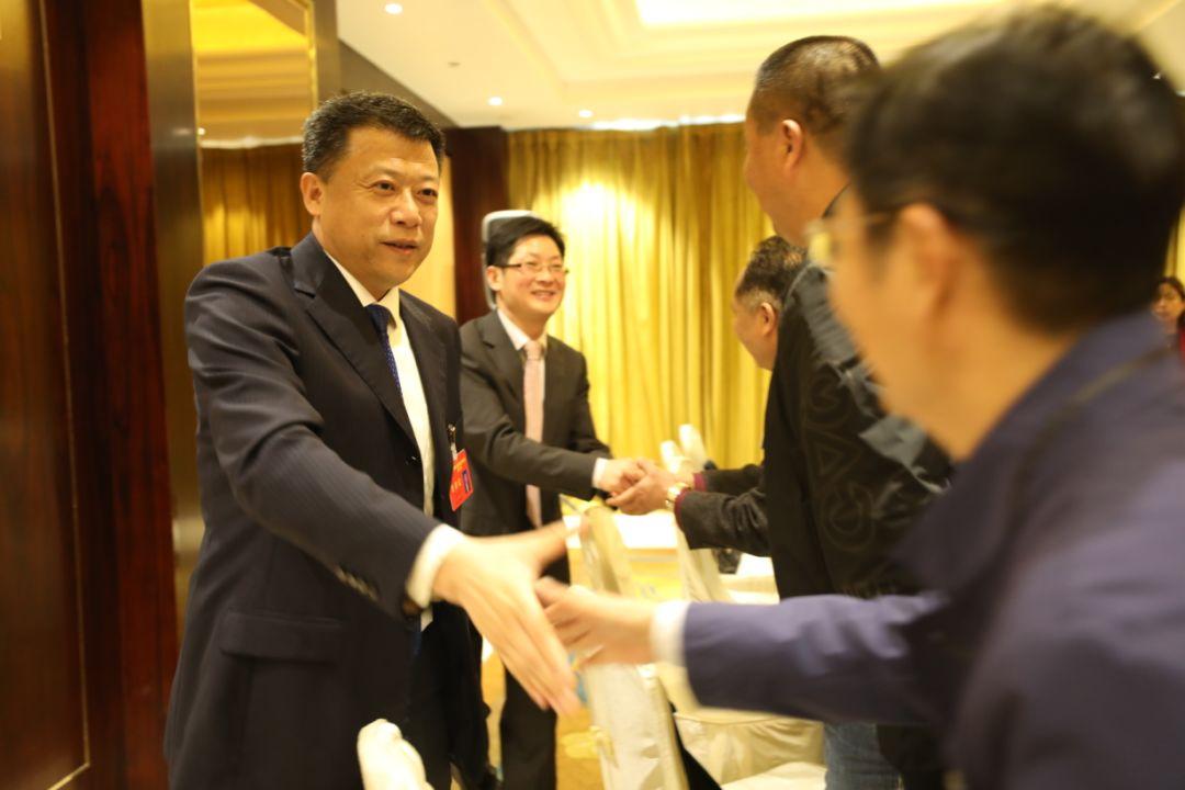 当主持人宣布选举结果后,新当选的区人民政府区长张红军走到主席台下与全体代表见面并鞠躬敬礼,会场响起热烈的掌声。