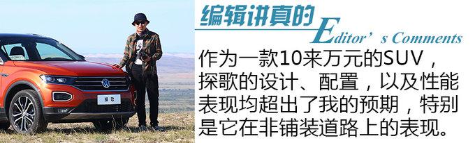 经过一天的试驾体验,让我有机会感受到探歌在综合路面下的表现。如果让我挑出探歌身上有哪点是最让我印象深刻的,那就是它如同轿车般的悬架调校和车内良好的静谧性,这对于一款既要兼顾日常城市通勤,还要带你“翻山越岭”的SUV来说,是最大的优点。而如果非要让我挑出它存有哪些软肋,或许就是1.4T发动机了,由于排量所限,后段的动力输出会较为线性。但身为一款紧凑级SUV,谁又会天天开着它和别人飙车呢?而且别忘了,它还有运动模式和S挡的双重选择。