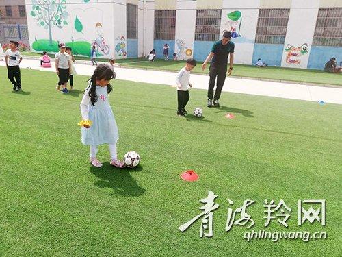 “小朋友们,大家排成两列,用脚带球走。”在青海大学附属幼儿园的操场上,幼儿园小班的足球课开课了,小朋友们在赵文彤、黎万平、邹凌云的专业教练团队带领下开展了以游戏为主、训练为辅的足球课。别看这些萌宝只有三四岁,可踢球的认真劲儿不比成年人差。