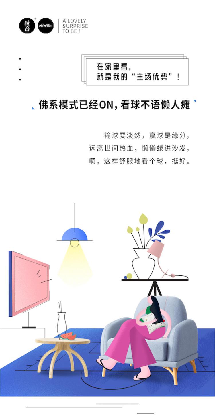 家居设计品牌 ziinlife 吱音上线世界杯营销,根据九成中国观众在家观看世界杯的洞察,制作了一系列在家看球的宣传海报。