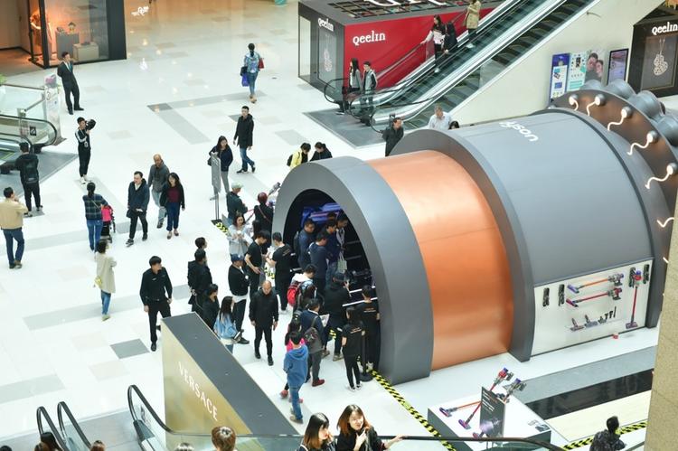 戴森在上海恒隆做了个吸尘器博物馆,将 Dyson V10 的每个部件都拆解、放大。观众能够穿行在部件造型的展区之间,亲身体验 Dyson 吸尘器的原理和内部构造。