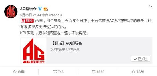 胜利之路总是要经历磨难,失败不是意味着放弃。或许在今后,我们能看到AG超会玩重新杀回KPL的赛场,我们能在赛场上看到熟悉的身影,熟悉的队名。但是,就像许多粉丝说的,那个曾经的银河战舰,那个我们熟悉的AG超玩会或许已经真正的要离我们远去了,那个载满了大家的青春、激情与辉煌的战舰,已随着时间一起,驶向了远方...