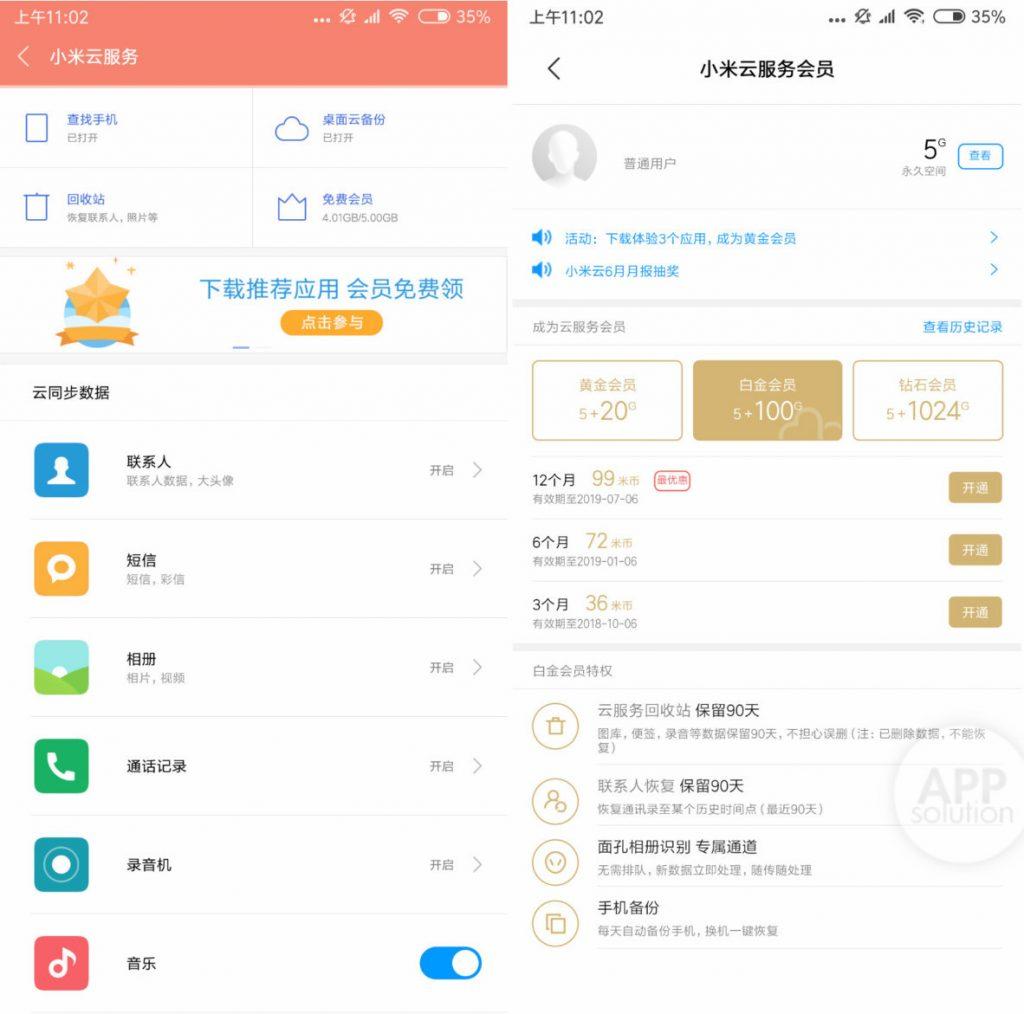 同时,MIUI 也提供了云备份服务,登录 ID 后,系统会自动备份桌面数据、联系人、短信、相册、通话记录、信息助手、浏览器数据、便签等内容。备份周期有 7 天一次和 1 天一次可选,但后者需要会员充值后才能使用。