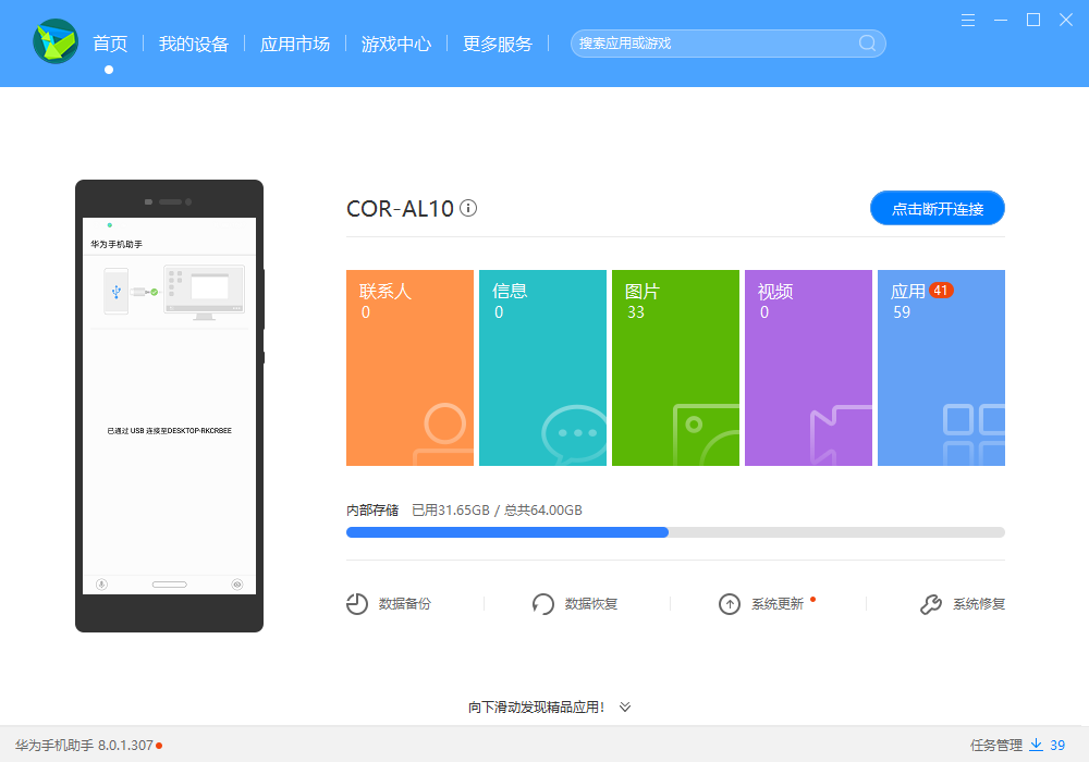 在电脑端安装华为手机助手「HiSuite」后,用户可根据自身需求将手机内容备份到本地电脑中。
