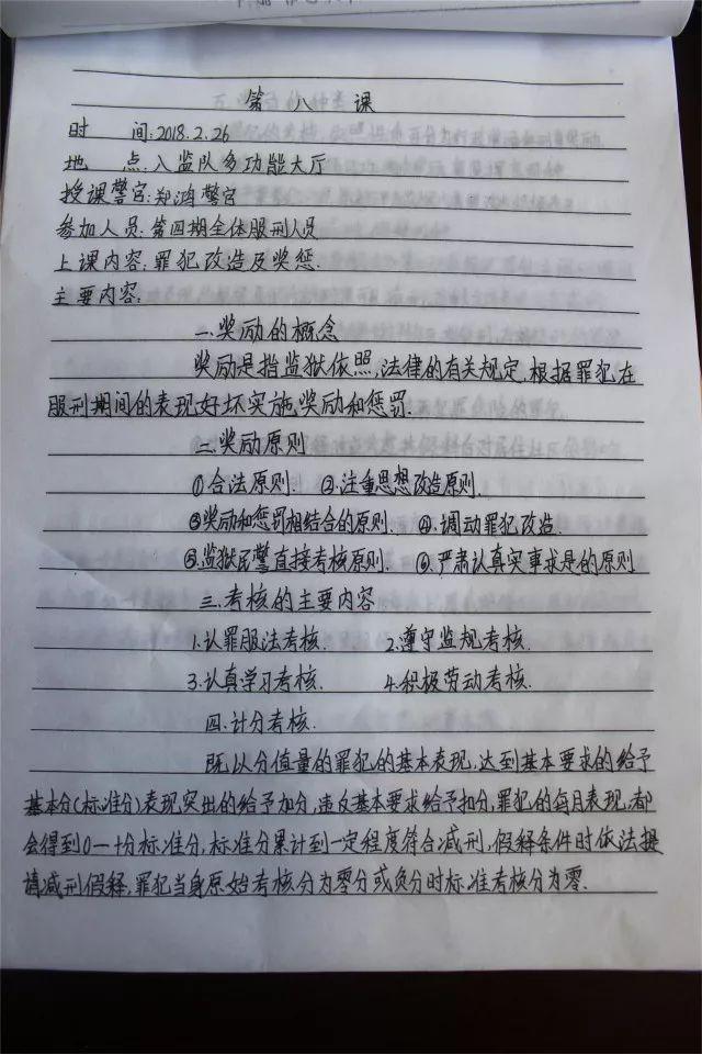 进一步细化授课安排,定期不定期检查服刑人员学习笔记,并阶段性以书面考核方式验收学习效果。