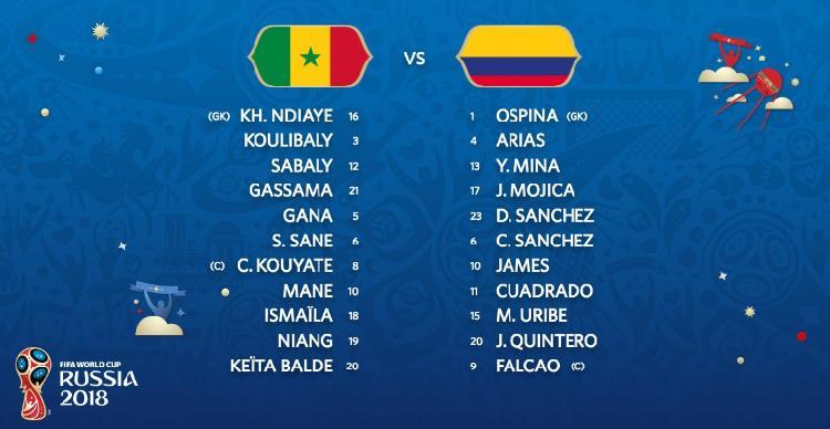 哥伦比亚VS塞内加尔首发阵容