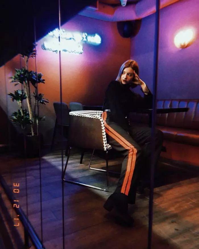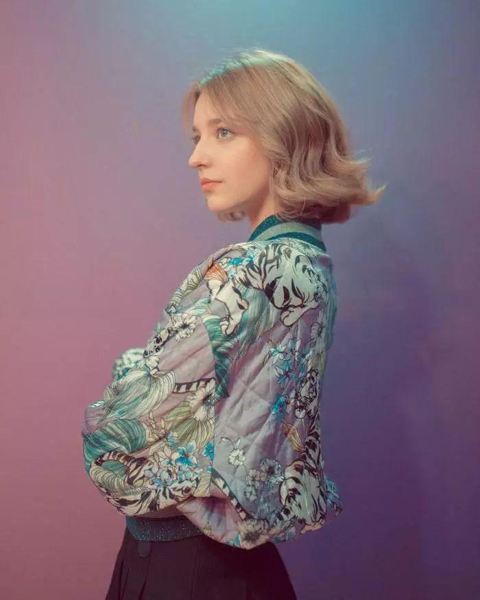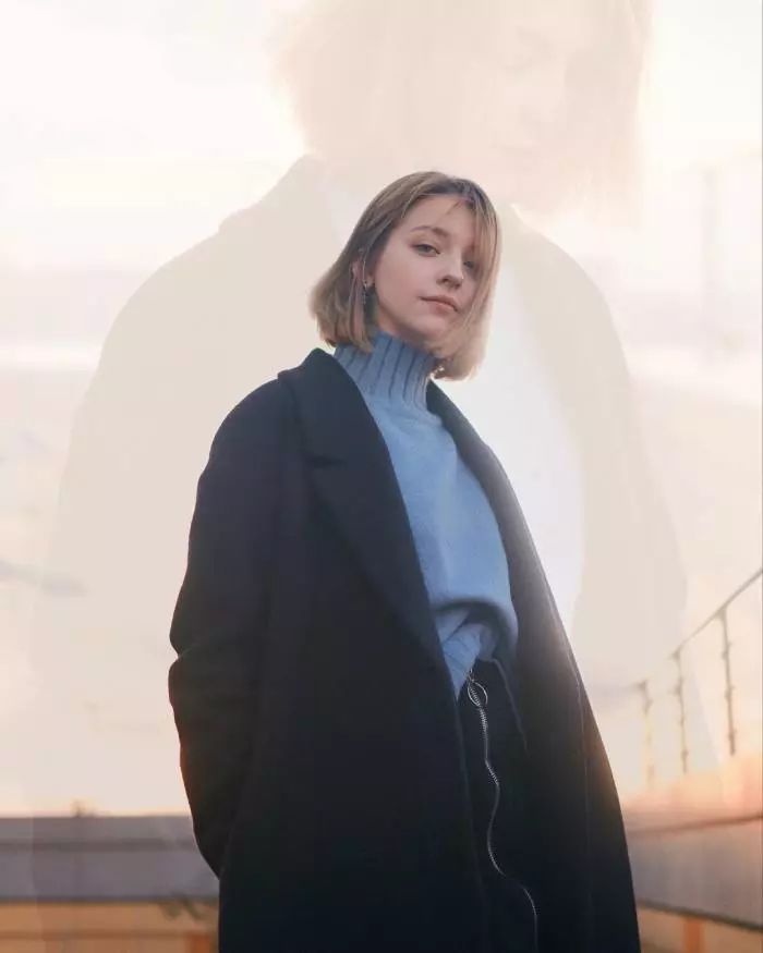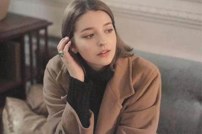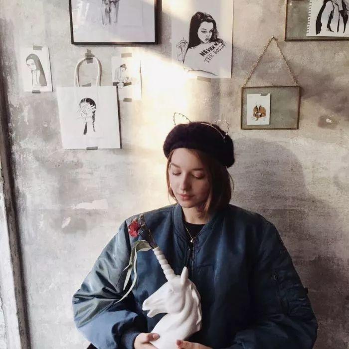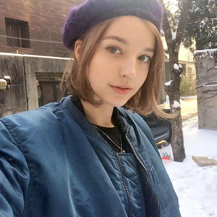 发尾微波短发的卷发弧度只有一点点,所以看起来自然感是很强的,参考下图AngelinaDanilova的穿搭,搭配上一个合适发色的贝雷帽也是美的。