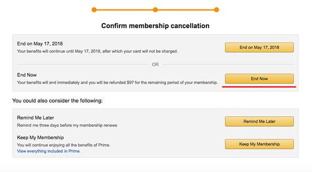 当然你也能够直接选择中间的「End My Benefits」按钮,这个时候系统可能会作最后挽留你的最后努力,表示取消后各种免费的视频、音乐都不能看了之类,只要断然地点取消就好了。