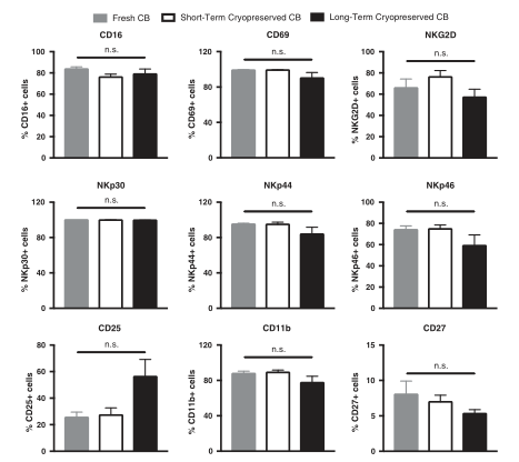 长期冻存后的脐带血NK细胞