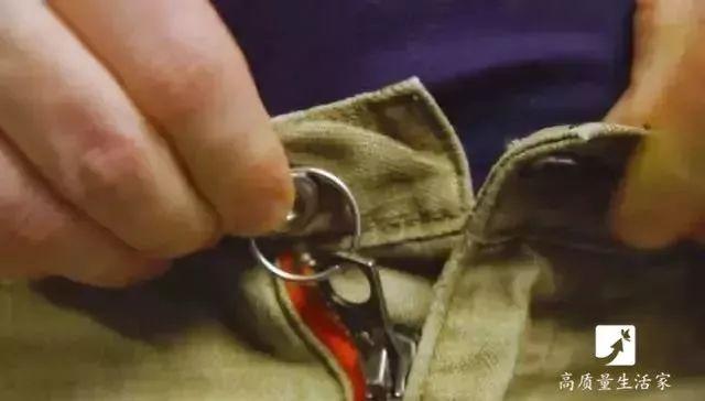 裤子上的拉链老往下滑怎么办?准备一个钥匙环,穿在拉片上,接着将钥匙环扣在裤子扣子上,就不会再往下滑了。