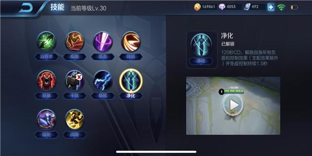 净化技能的优缺点也非常的明显,这个技能的适用人群非常的广,每位英雄都能够携带净化技能,不像无敌效果与霸体效果,只有一部分英雄能够使用。缺点就是冷却时间过长,需要2分钟才能换来解控与1.5秒的免疫控制效果。