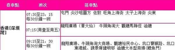 ②深圳湾口岸——香港时刻表(票价40港币起)