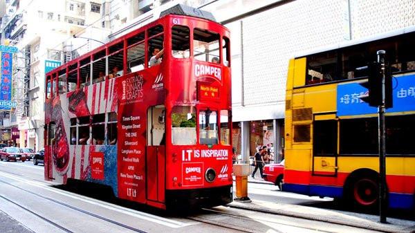 香港最便宜的交通工具,已过百岁生日的叮叮车已然成为香港街头一道不可磨灭的风景线。司机不时用脚底踩动铃铛,发出"ding ding"声,提醒行人和车辆避让。