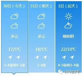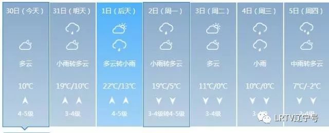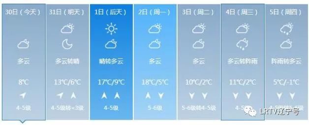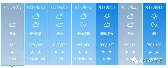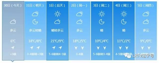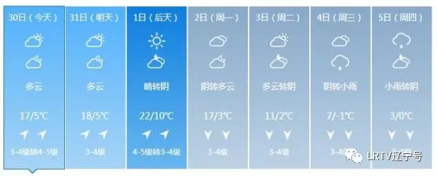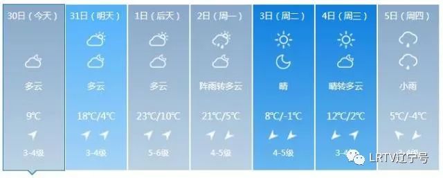 2日天气将出现变化,全天云量较多,最高气温只有17℃,北风也取代了西南风,大家要小心感冒着凉。3日气温继续下降,4日、5日沈城还将迎来降雨。