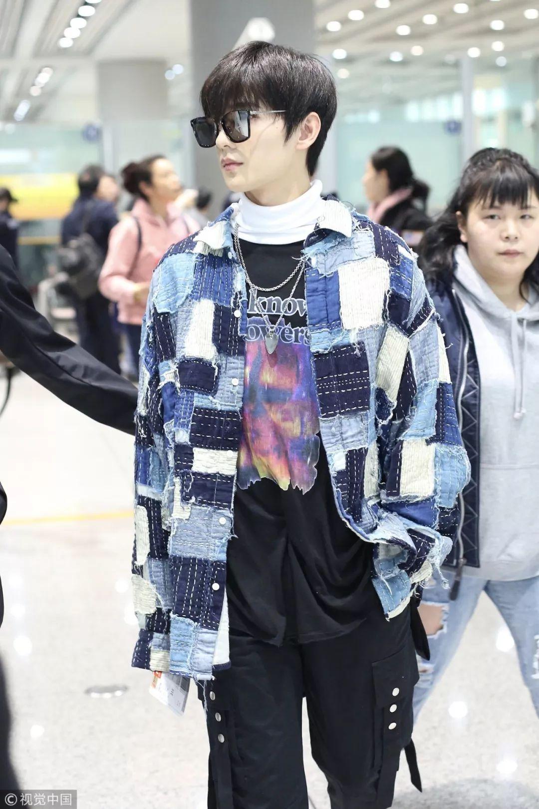 而这身同样合适男生。王源用Givenchy深蓝色水洗牛仔裤装内搭Givenchy 2018春夏系列黑色水洗牛仔衬衫和T恤,小源穿起来就是诠释青春活力和经典元素的碰撞。