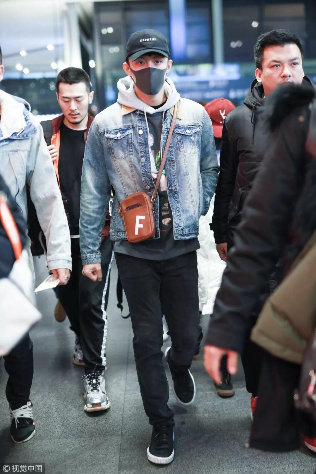 这种穿搭不仅是女生的专利,还是男生的最爱。最近因为《红海行动》而大受欢迎的黄景瑜身穿蓝色做旧磨白牛仔夹克内搭Gucci卡通人像印花灰色黑色拼色帽衫,是酷酷的*击狙**手顾准没错了。