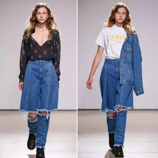 顺带说一下,这种另类的穿法就是传说中的Demi-Denims,简而言之,就是二合一牛仔裤...