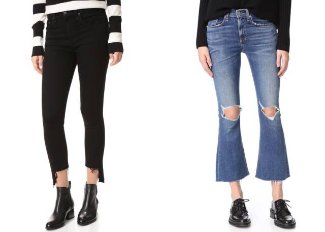 推荐款式:七分牛仔裤、九分喇叭破洞牛仔裤