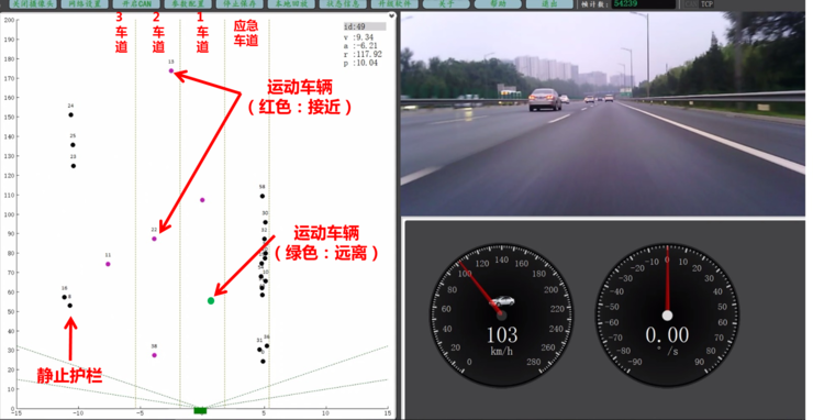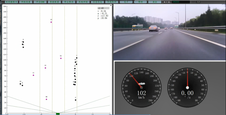 软件架构方面,毫米波雷达通过整车的CAN网络,实现与整车的通信和控制。毫米波雷达通过接收反射回来的雷达波进行数据采集,并将回波信号进行识别与处理,经过内部软件算法运算,识别前方目标,根据车辆当前的行驶状况,毫米波雷达控制器得出相应的决策,进而控制仪表作出相关显示,以及控制车辆完成加速或制动等操作,姚迪接着说道。