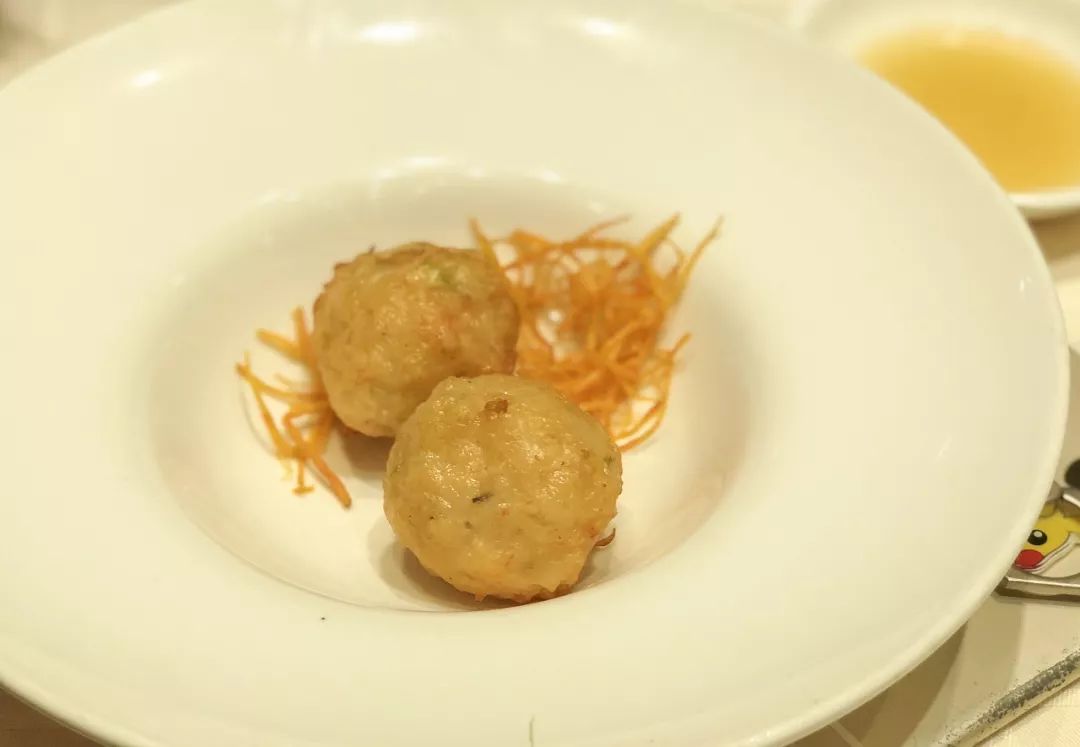 还有一道虾枣,也是传统潮汕菜。虽是干炸,但是虾肉鲜甜,再辅以韭黄、马蹄,口感顿时复合了起来。