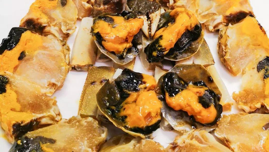 生腌大闸蟹和冬蠘,用臭氧消毒,调味时加入白兰地或者单麦威士忌,越吃越甜,有冰淇淋的感觉。