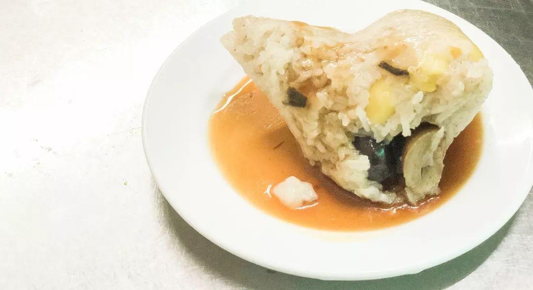 潮汕口味,味型极为复合,往往是甜中带咸,合并迸发出鲜味。老妈宫双烹粽球就是一个例子。红豆沙、乌豆沙和南乳猪肉、虾米、栗子混合于一体,再浇上一勺甜酱,每一口都不一样。