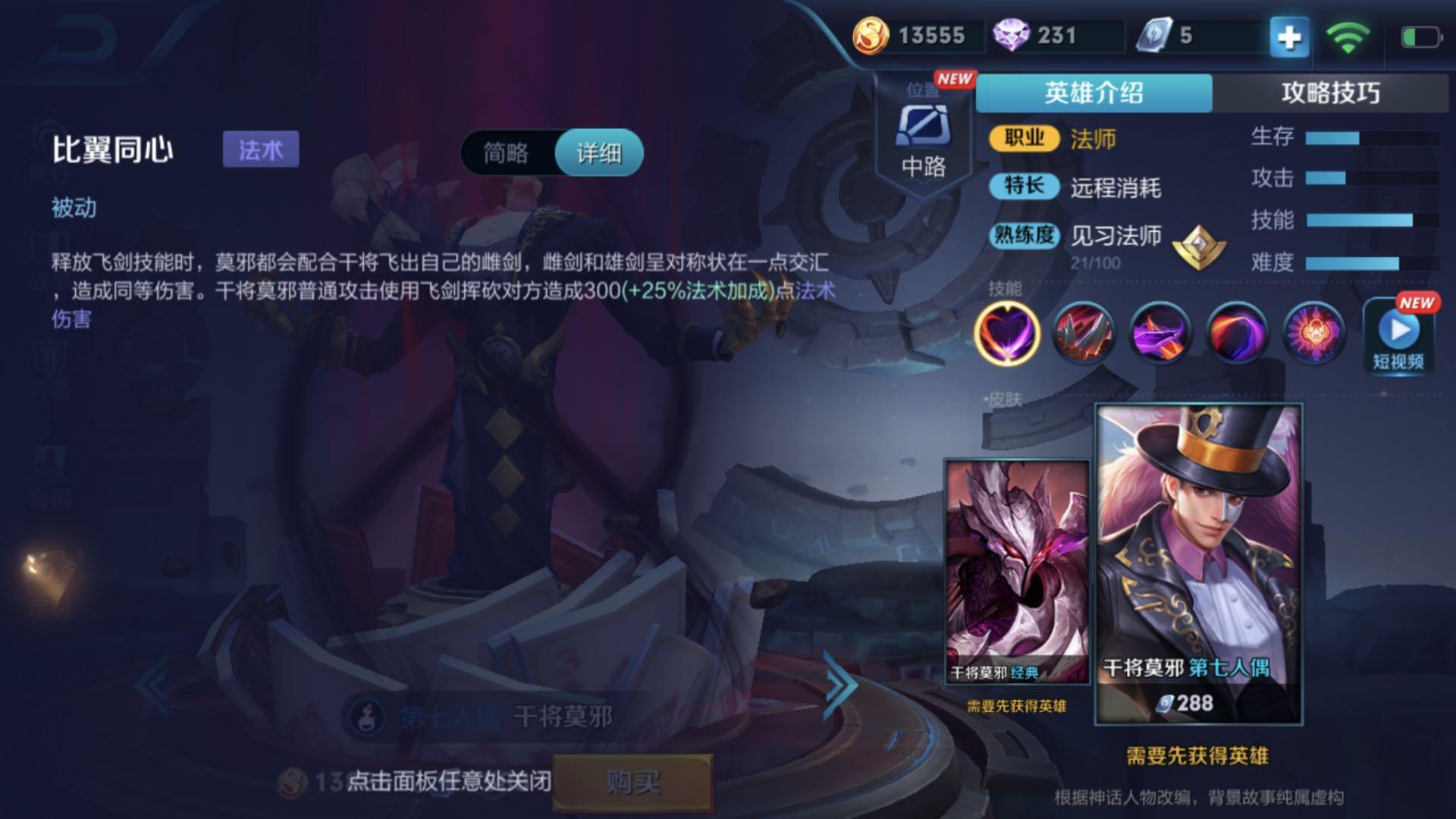 对于技能距离感的不熟悉需要多加练习,确保能以双剑能打中敌人,干将莫邪的普攻伤害特别高,而且是法术伤害,如果敌方英雄靠近,敌方对拼能力不强则能够跟他对拼。