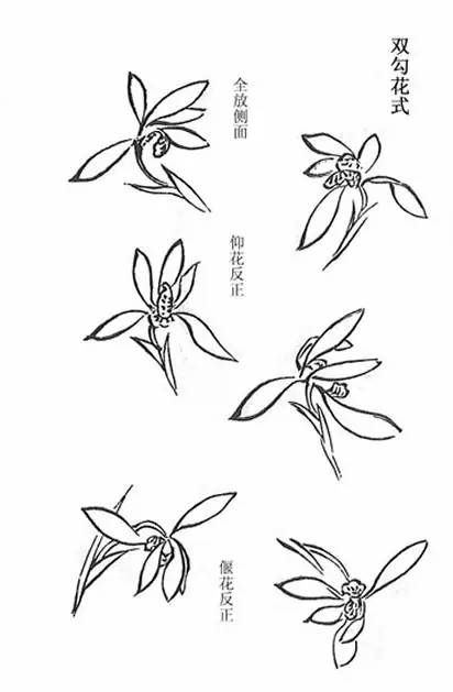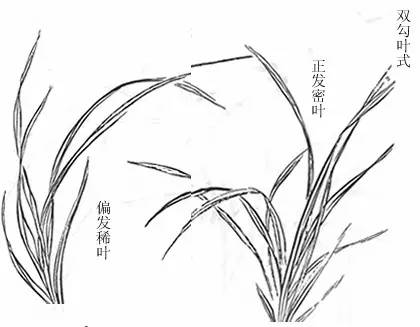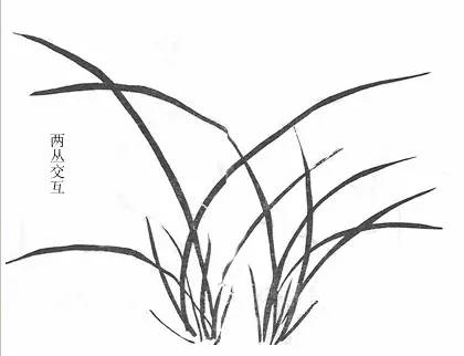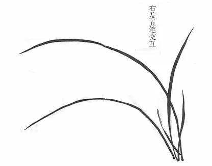 前面起手的一笔至三笔,都是自左向右画,是为了便于初学的人顺手易撇的缘故。现在讲如何画右发式,以便学习时由易而难,循序渐进。凡画兰,应使根相聚,虽多到数十叶,都要注意不可将叶画得一样,更不可乱。浓淡之间要相互协调,彼此穿插应布局合理。这些都在于自己用心领会。↓↓↓