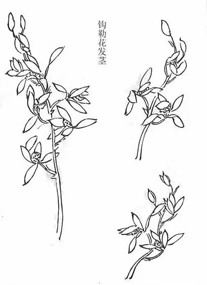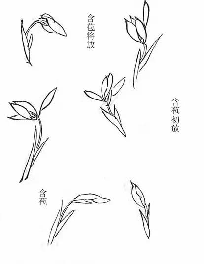 写兰蕊有二笔三笔四笔之不同,其茎发自花苞中,与花一理。↓↓↓