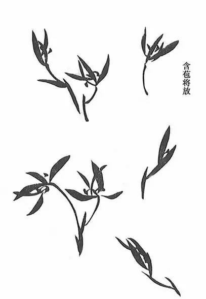 叶虽数笔,其风韵飘然,如霞裾月珮,翩翩自由,无一点尘俗气。丛兰叶须掩花,花后更须插叶,虽似从根而发,然不可丛杂,能意到笔不到,方为老手,须细法古人。自三五叶,至数十叶,少不寒悴,多不纠纷,自能繁简各得其宜。