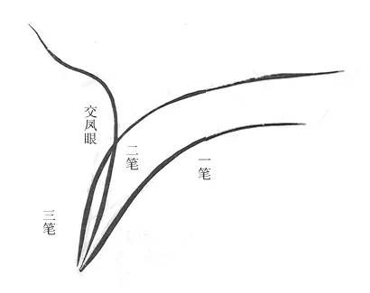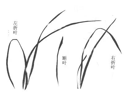 画兰全在于叶,故以叶为先。叶必由起手一笔,有钉头鼠尾螳肚之法。二笔交凤眼,三笔破象眼,四笔、五笔宜间折叶。下包根箨,式若鱼头。成丛多叶,宜俯仰而能生动,交加而不重叠。须知兰叶与蕙异者,细柔与粗劲也。入手之法,略具于此。