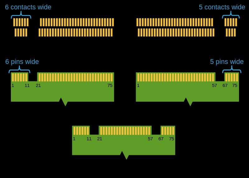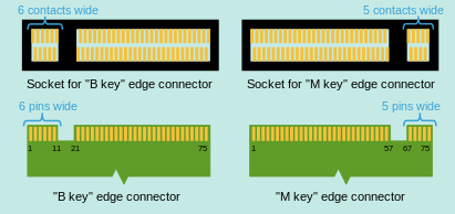 这两者有什么区别呢?首先是针脚定义的不同,B-key能够看到下图,是6根金手指,M-key的话只有5根金手指。