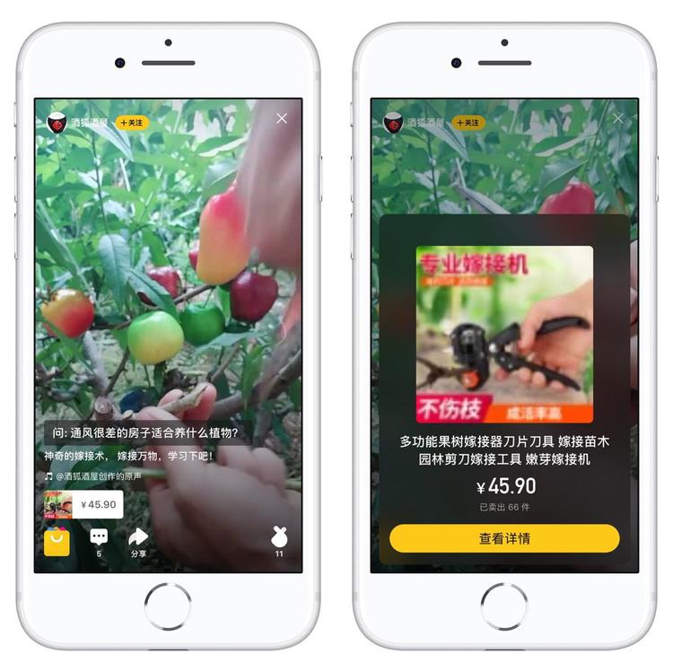 带有电商导购性质的短视频在*放播**完 1 次后,屏幕左下角的购物袋图标都会跳出相应的商品价格,用户点击后能够跳转到淘宝购买。