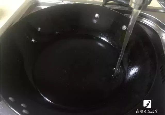 刷几遍后把白醋倒掉,以清水冲洗铁锅。