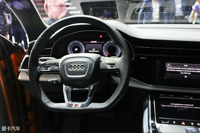 内饰部分,奥迪Q8使用了目前的家族最新设计,与A8非常相似,整个车厢内部很难找到物理按键,看起来十分简约、富有科技感。
