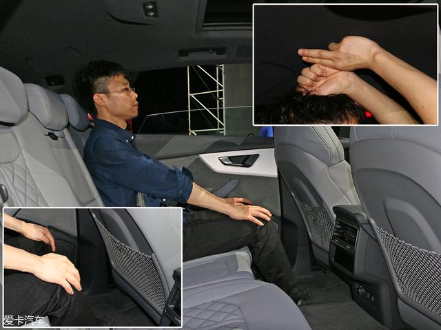 保持前排座椅位置不变,体验者坐于后排,此时头部依然剩余一拳两指空间,腿部空间也非常宽裕。