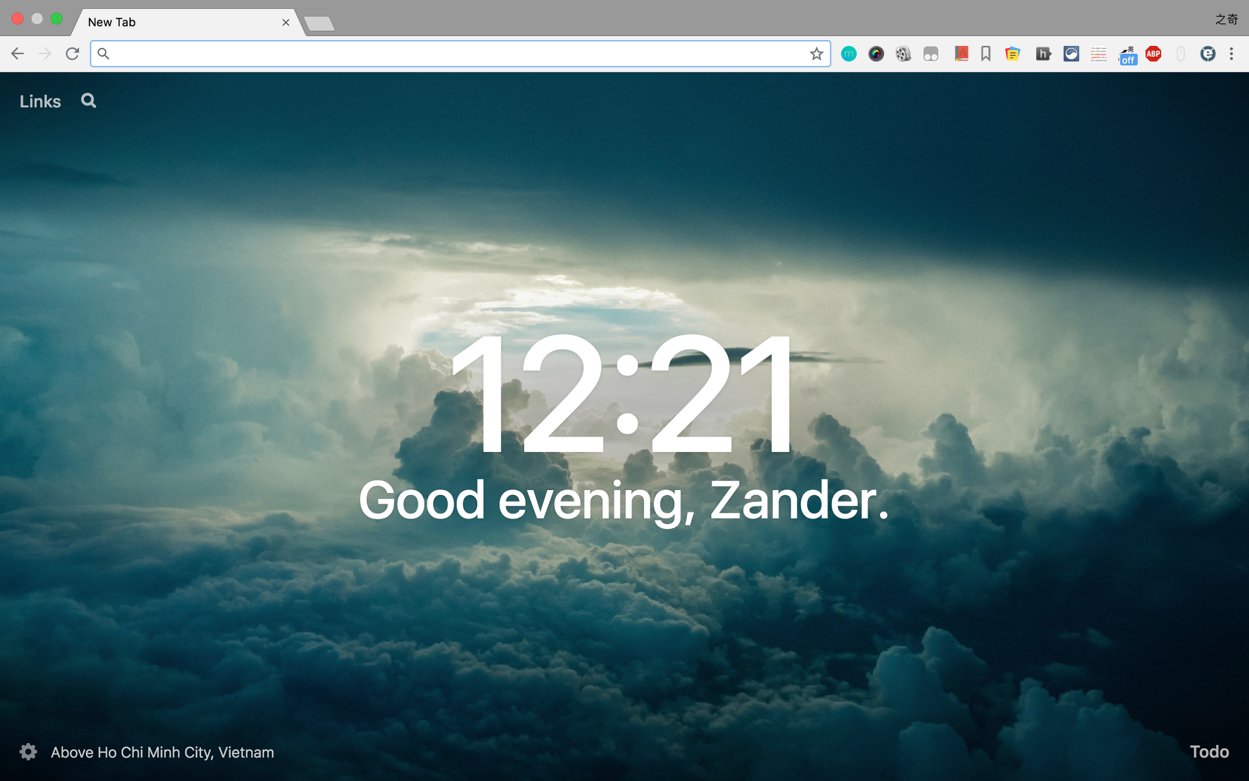 Momentum 和 Earth View 类似,也将随机使用图库中精选过的图片来美化你的选项卡。除此之外,还提供了时钟、美文推送、提醒事项等工具,把你的新选项卡变成一个多功能启动器。