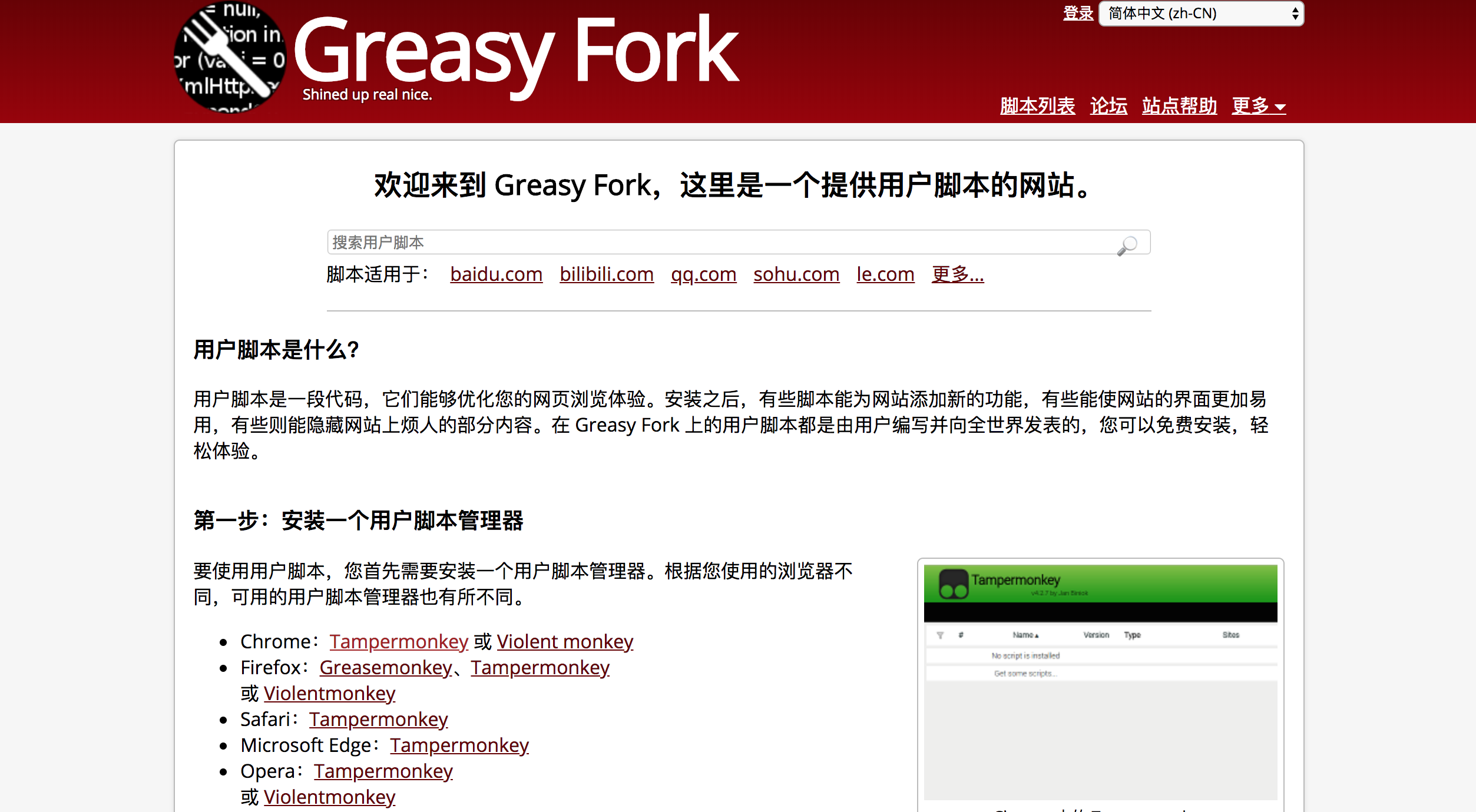 你能够在 Greasy Fork、OpenUserJS 等网站寻找*载下**需要的脚本,安装后开启游猴,这些脚本将自动起效。