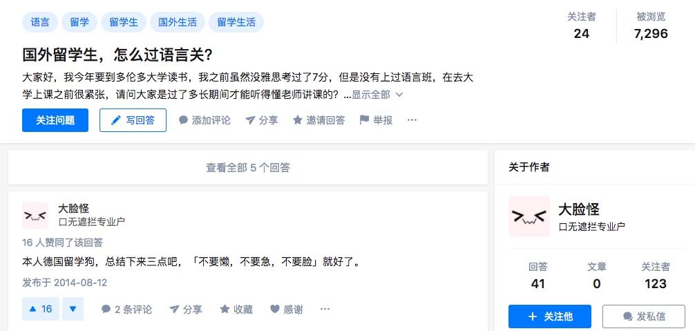 苏辰也是在出国后才成为知乎的高频使用者。“在知乎上回答一些问题、分享记录自己的想法,对我来说也是一种倾诉了。”苏辰说。去YouTube上看综艺节目是苏辰的又一情绪排遣方式,类似《吐槽大会》这样的喜剧脱口秀是苏辰喜欢的。