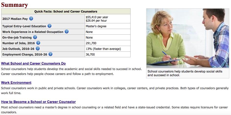 芥末堆采访的几位低龄留学生中,没有一位将主动向专业的心理咨询师或学校的指导顾问寻求帮助视作纾解情绪的上策。很多国外中学虽然没有班主任,但通常均设有指导顾问的角色。以美国劳工部对学校及职业指导(school and career counselor)这一职位的定义为例,指导顾问主要为学生的学业规划、职业发展、社交及情感困惑提供建议,很多从业者都有教育咨询、教育学或是心理学相关的教育背景。