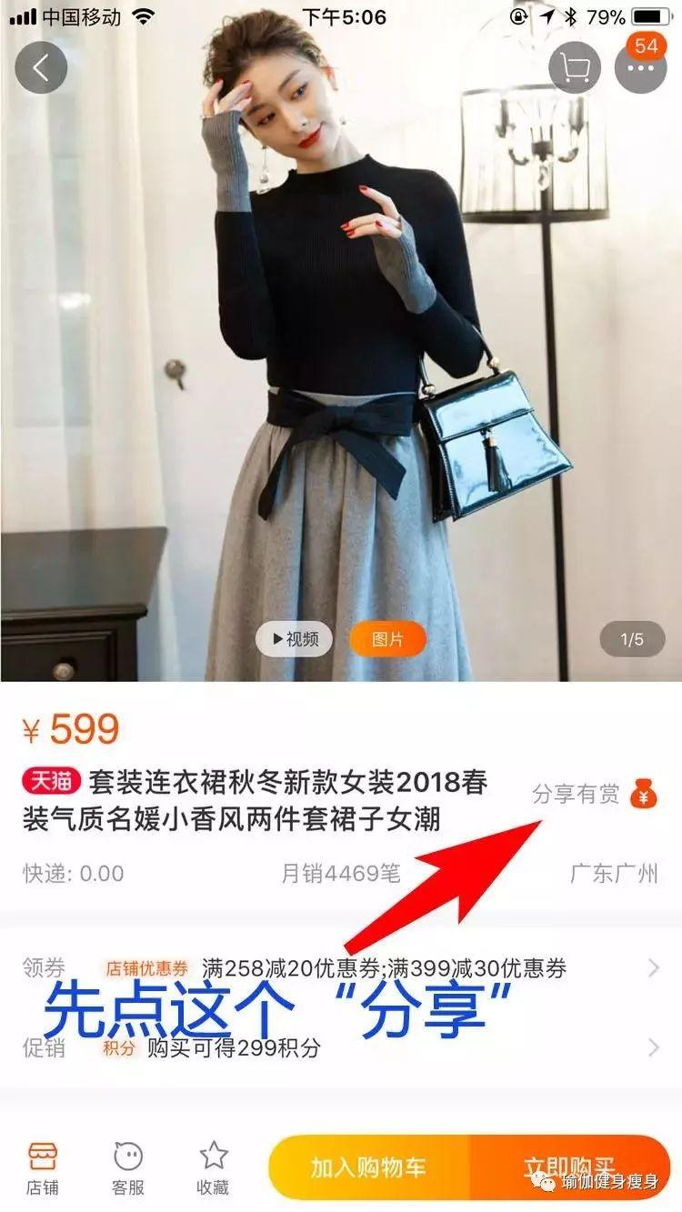 1、在淘宝里面找到你想要购买的商品,然后点击标题后面的“分享”