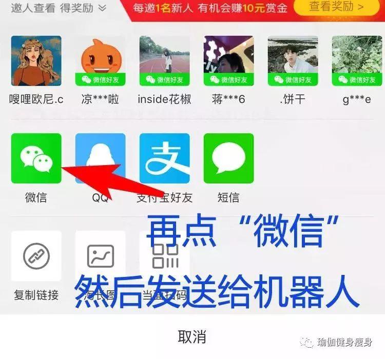 2、点“微信”或者“复制链接”然后发送给机器人。