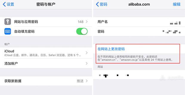 而在新推出的 iOS 12 中,这一功能得到了加强,密码列表中将标记出已重复使用过的密码,并可快速跳转至对应 app 或网站,替换为自动生成的强密码。