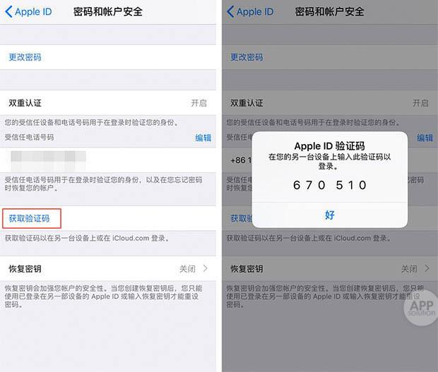 - 在线状态:进入「密码与安全性」,点击「获取验证码」。