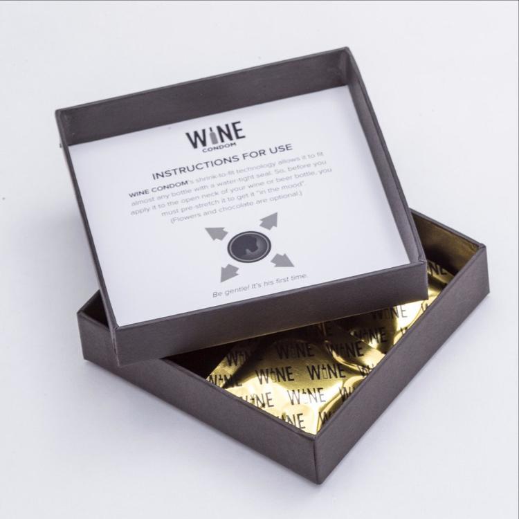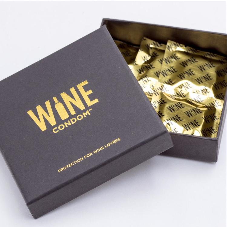 几年前的一个晚上,Laura Bartlett 把朋友聚会后没喝完的红酒带回家,为了保存已开封的红酒,她在瓶口套上保鲜膜和橡皮筋,儿子 Strahan 看到后,开玩笑说,像是个“安全套”。正是这个玩笑,给了母子俩灵感,他们决定做一款红酒专用的“安全套”,开始设计产品、logo 以及包装。