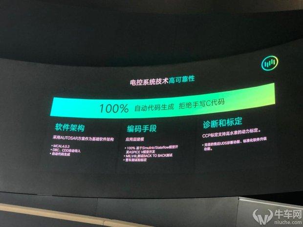 核心的控制器件使用多核主芯片,前端芯片采用ASIL-D级认证,随机失效率1.14万年出现一次。电控软件代码基于Simulink/Stateflow模型100%自动生成。