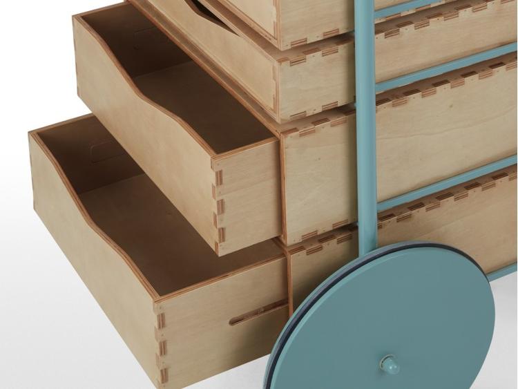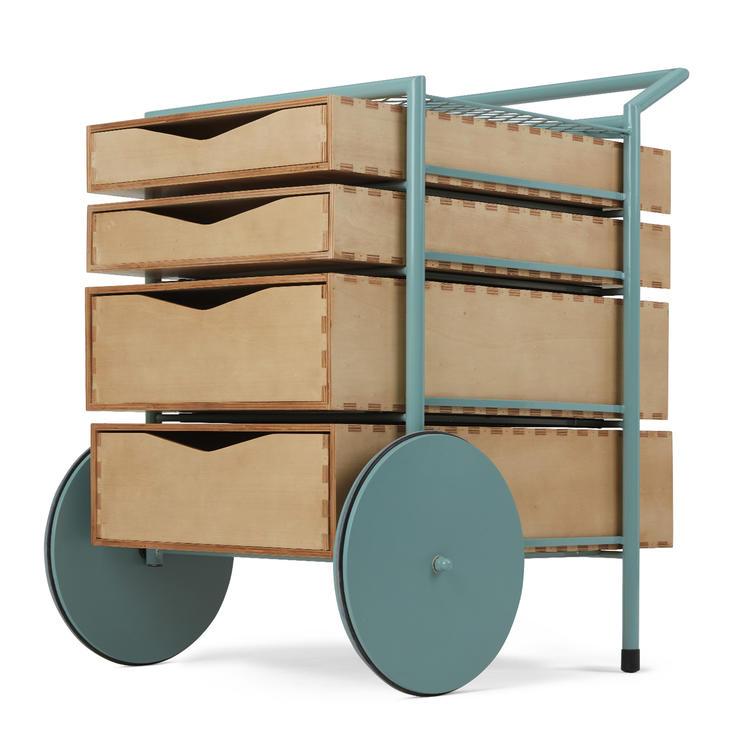 Swappi 不仅能够提供存储、收纳功能,可调节的抽屉也能变为展示型货架。手推车的形式更合适小型空间使用,轻松实现在房间里四处移动的需求。薄荷绿色的框架搭配四个木制格挡,更合适当代家居空间。早鸟价 279 英镑,。