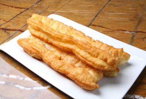 油条以小麦粉和水为主要原料,以膨松剂为主要辅料,经面团调制、醒发、成型、油炸而成,外皮酥脆且内里松软多孔,色泽金黄、咸香适口,是我国传统的早餐食品和大众化小吃,但食用也有讲究。