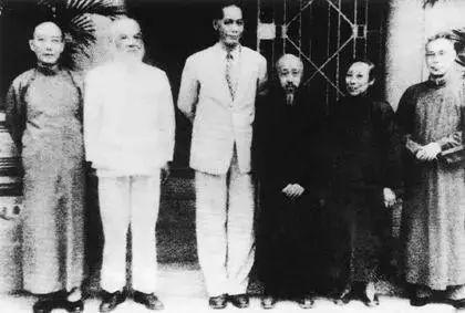 1948年,知名民主人士(左起)郭沫若、谭平山、蔡廷锴、沈钧儒、何香凝、马叙伦在香港留影。